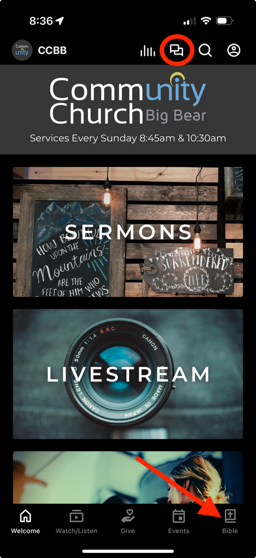 To access the bible reading plan, tap the Bible icon in the menu at the bottom.